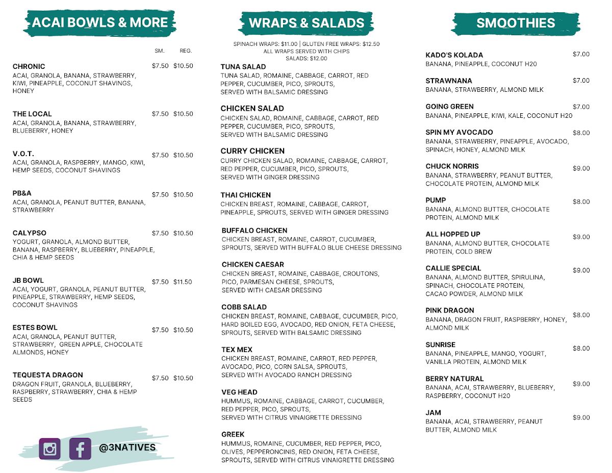 For something heartier, the Hot Wraps impress with fresh ingredients pressed into warm, flavorful bites—options like the Hot Chix with blue cheese and buffalo dressing add a spicy, savory punch. Customers rave about the fresh, clean flavors, attentive service, and welcoming atmosphere that make dining here a refreshing, healthful experience. Whether you’re stopping in after gym time or craving a wholesome meal, 3Natives consistently delivers quality and satisfaction.